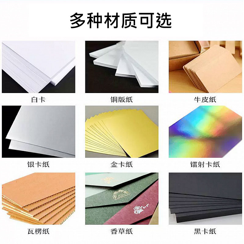 印刷纸张:铜版纸、双胶纸、哑粉纸、珠光纸、其他艺术纸(艺术纸种类较多我们可以免费提供纸样供您选择)