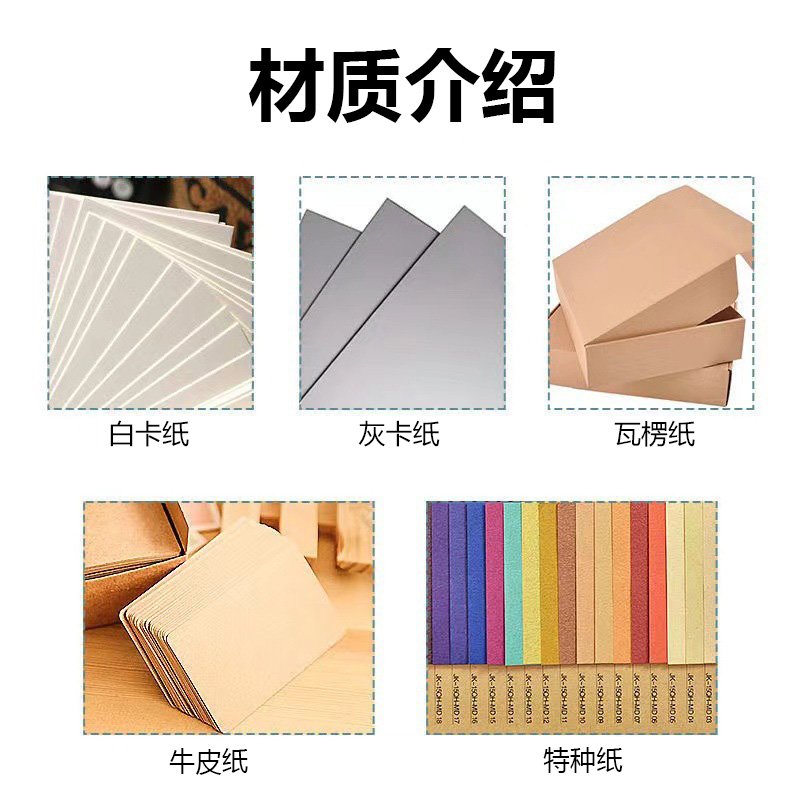 印刷纸张:铜版纸、双胶纸、哑粉纸、珠光纸、其他艺术纸(艺术纸种类较多我们可以免费提供纸样供您选择)